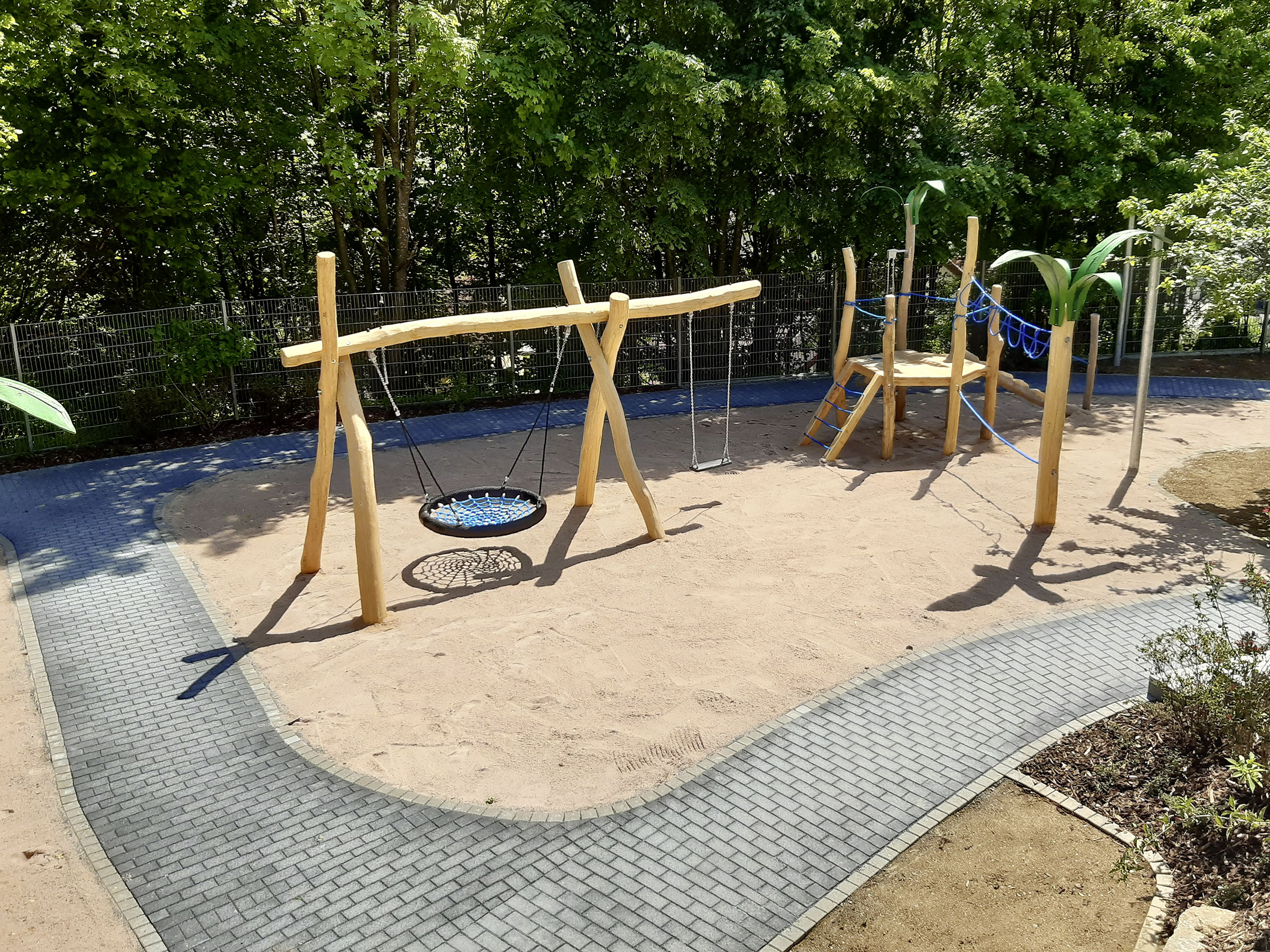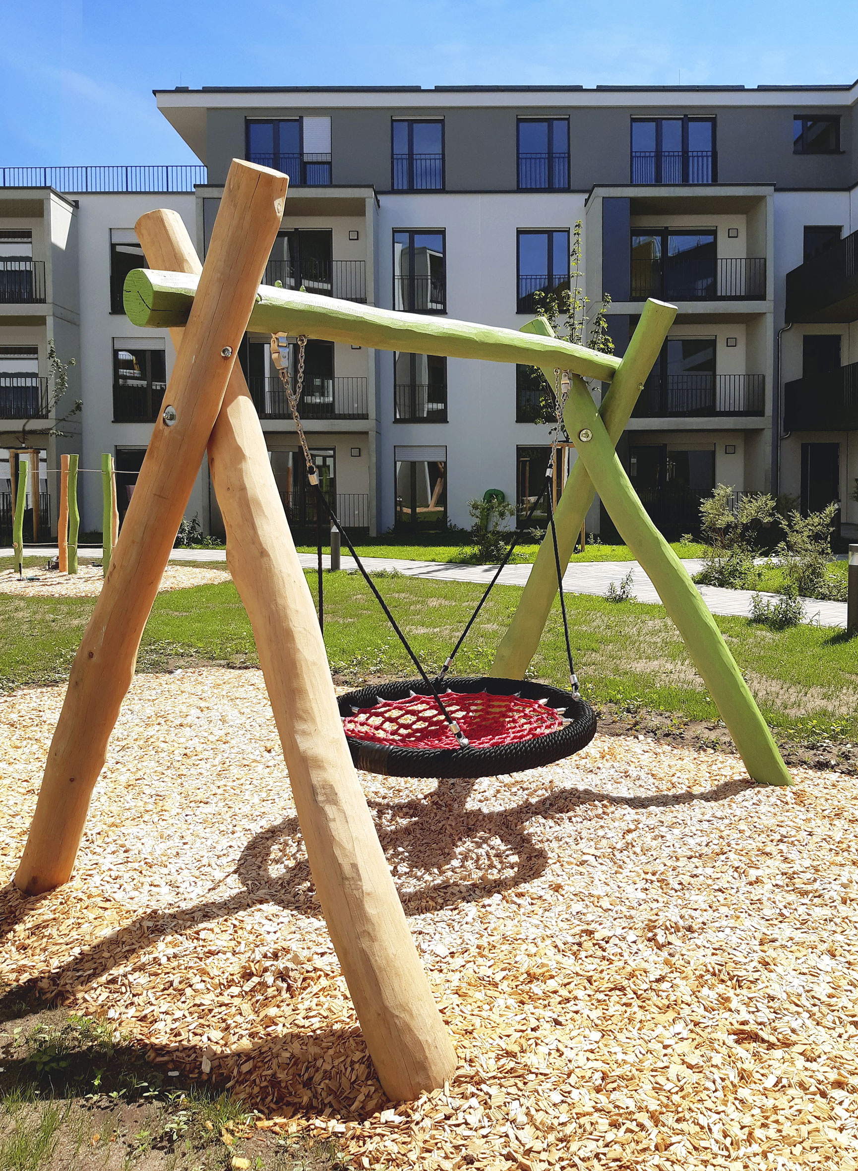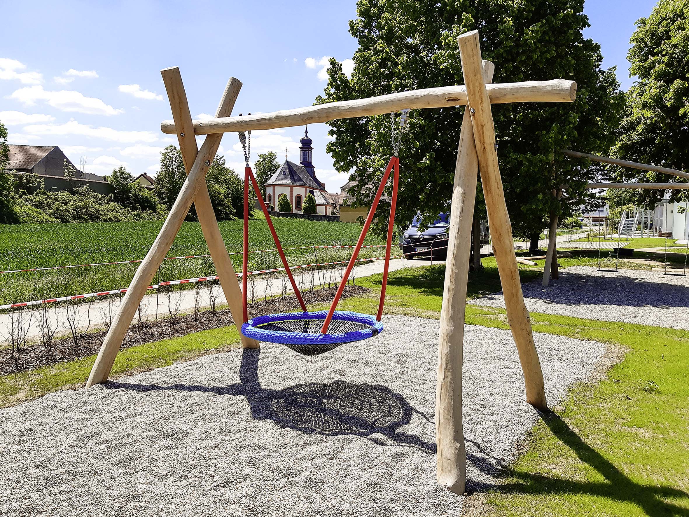 Größe des Schaukelgerüsts und Ausstattung wahlweise mit Brettschaukeln, Vogelnestschaukeln, Kleinkindschaukelsitzen oder Tellerschaukeln, sind möglich. Ihre Schaukel kann zusätzlich mit dekorativen, handgeschnitzten Stelen Teil eines Themenspielplatzes sein.